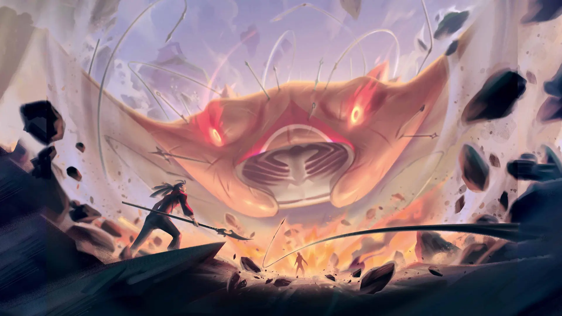 Elle voit une ombre gigantesque jaillir du couvert des nuages, éventrant leur surface comme un éléphant sort de la brume. C'est une raie Manta, au vol presque gracieux. Mais sa taille la rend tout sauf lyrique. Ses yeux sont rouges comme la colère et la destruction, animés d'un feu qui semble inextinguible. Son envergure doit dépasser le kilomètre, et sa vitesse est fulgurante, telle celle d'un oiseau de proie.