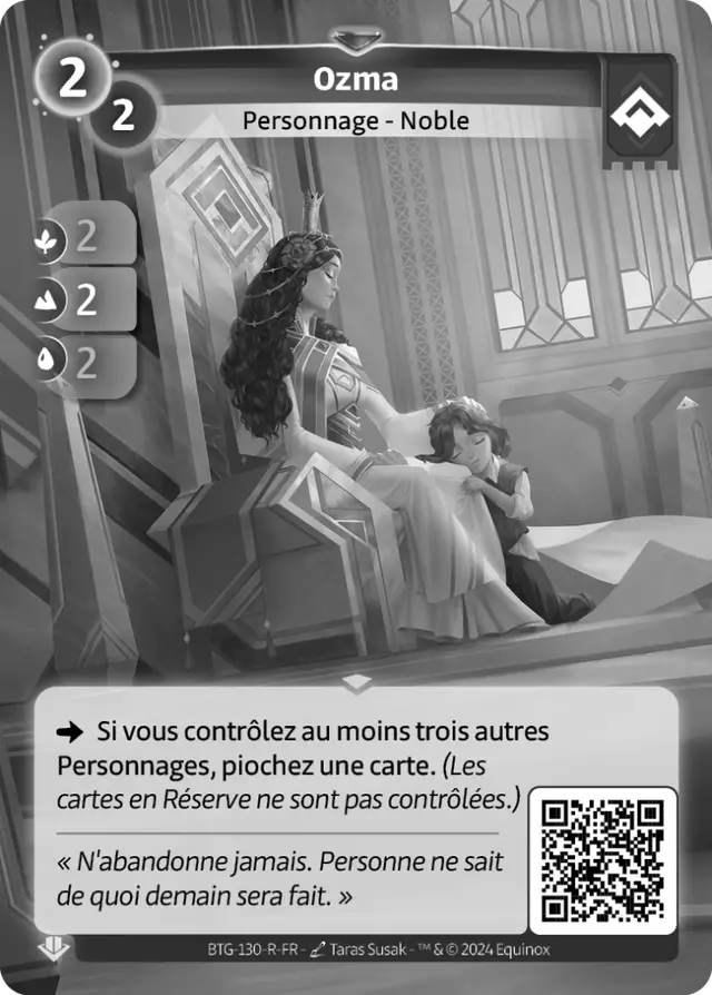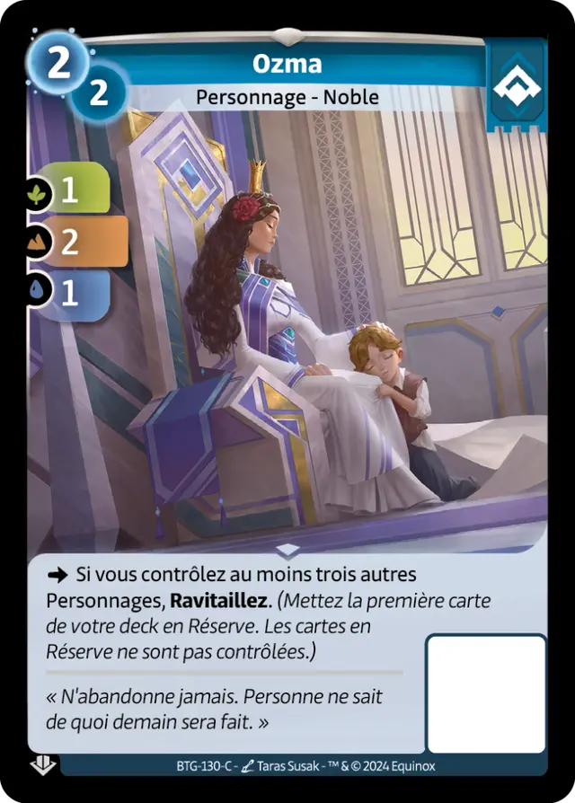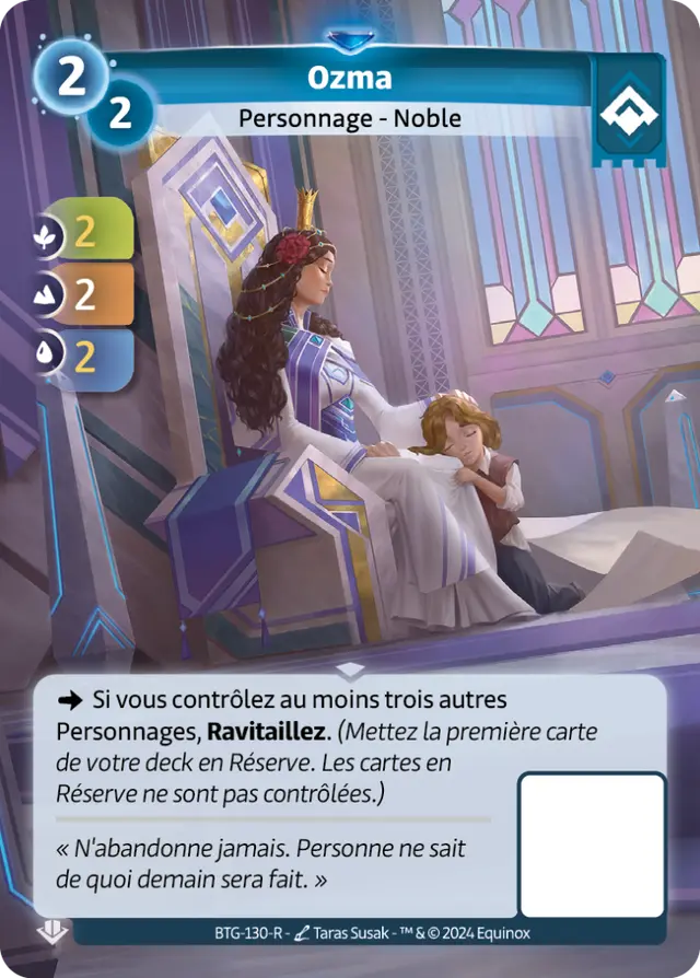 En travaillant sur l’erratum d’Ozma, nous avons cherché à préserver son identité principale, qui est de générer un avantage en cartes, tout en ajustant son niveau de puissance avec un minimum de changements. Pour Ozma, cela signifiait maintenir l’identité Ordis, qui repose sur la présence d’au moins trois autres Personnages.